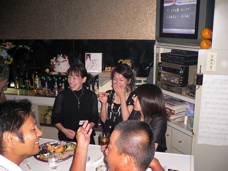 ハイ! 紹介します。左から、Yasukoママ・Mitsumiママ・Masamiママの3名。ハンジョしとりますな〜。