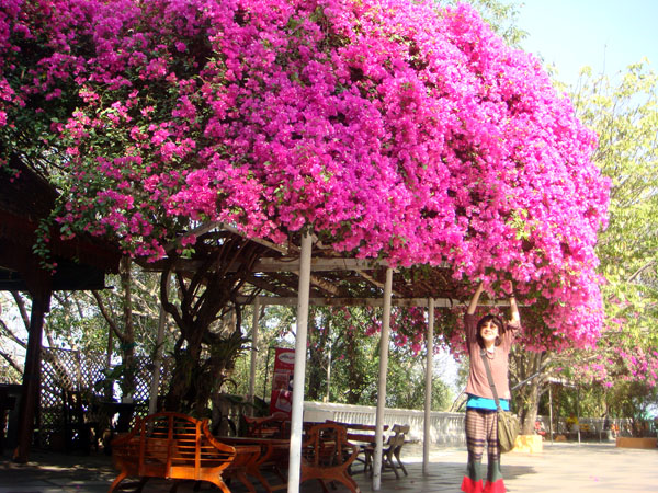 沢山の花をつけた木でナァ〜。 木の幹が細いので下からいくつもの支柱で支えてあります。 かなり圧巻でした。