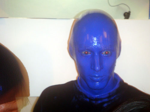 こいつが、BLUE MAN 。 青、青、青。こんな奴らが3人メインでステージを展開。 表情ちっとも変えんし。